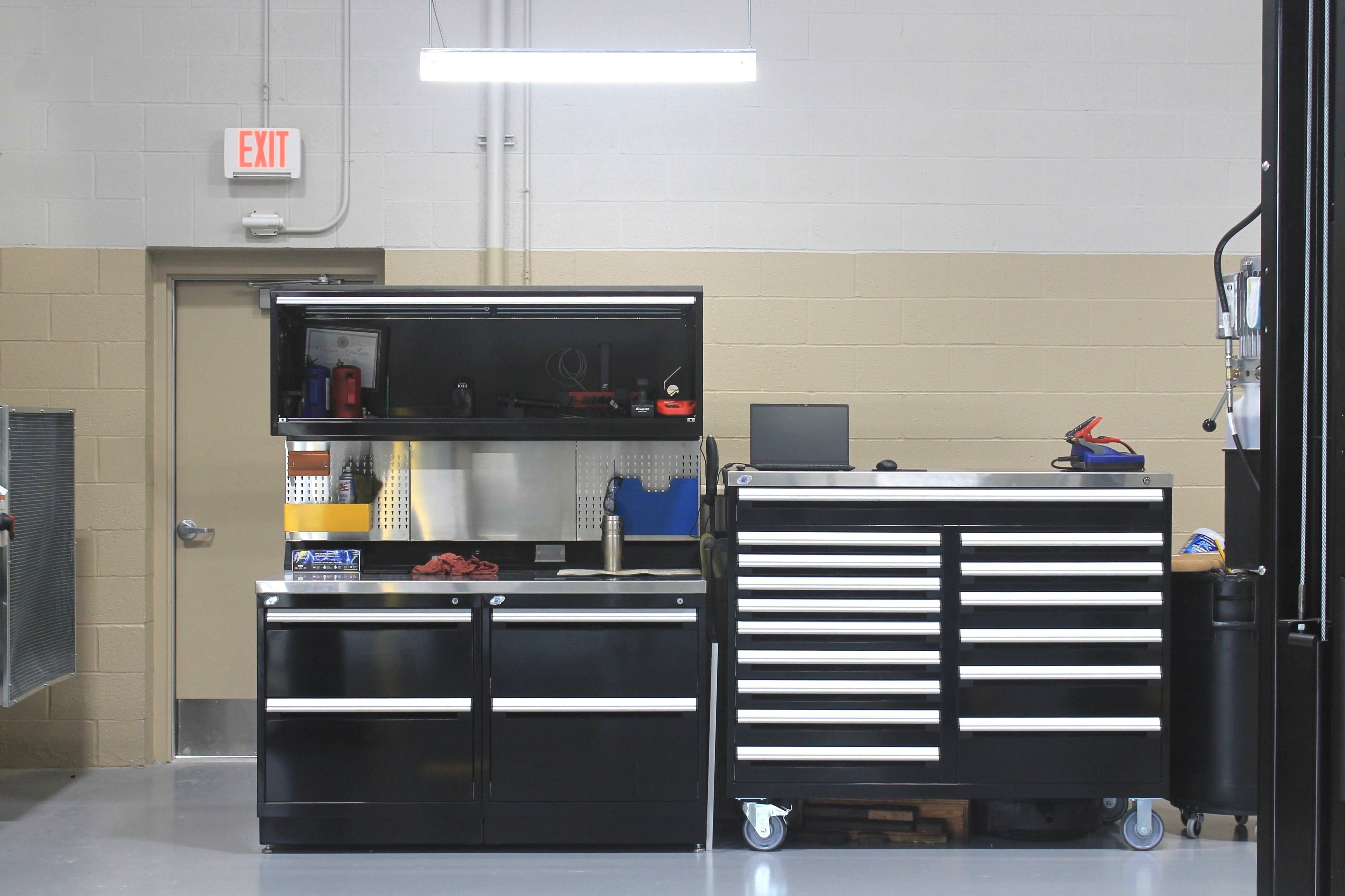 Think about your current workflow, where are technicians being held up when working on vehicles? Customized service bays can ensure that everything part and tool is close by, eliminating back and forth time, and keeping floors clean of items. For oil changes, tire changes, vehicle preparation, and more, your service bays can be customized to best support your operations. Reach out to our automotive experts here or give us a call at 1-800-875-6201.