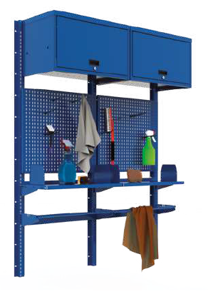 For car detailing, a Wall-Mounted Cleaning Station can allow technicians to have a designation workspace to complete these tasks. With two storage cabinets available for holding equipment, along with hooks and shelves for cleaning products, everything can be within reach.